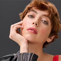 Seinen markanten Gegenpart findet der stumpfe Cut in der rot definierten Lippenkontur. Darüber sorgt Sensual Lipstick Brilliant Sheer Flame für warme Weichheit, die sich im schimmernden Farbton von Eye Performer Shiny Hazel wiederholt, ungezwungen und geheimnisvoll zugleich.